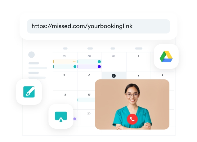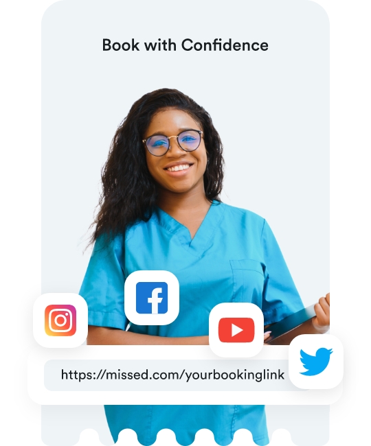 Patients will still come to your office, but now they can book online with your self-service booking page. Missed.com integrates your online bookings process with automatic payment processing, confirmations and reminders, client management, team scheduling and more.